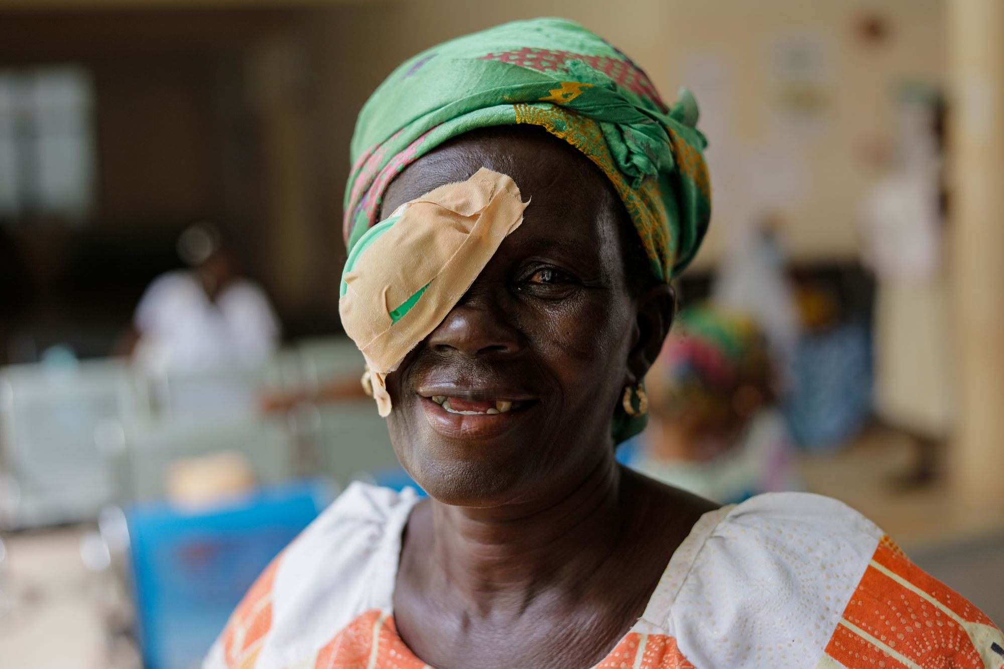 This past year, Adwoa's children decided to seek medical help. Accompanied by her daughter Alice, Adwoa made her way to the Tarkwa Municipal Hospital, where The Tej Kohli & Ruit Foundation and HCP Cureblindness had organized a surgical outreach to address her condition. The surgery successfully removed the cataract from Adwoa's left eye, restoring her vision. Adwoa recalls, "The first surgery was not scary because I knew everything would go well. My whole life, I have not done any surgery, so I had no expectations. In a short time, the surgery was over, and there were no complications afterwards."